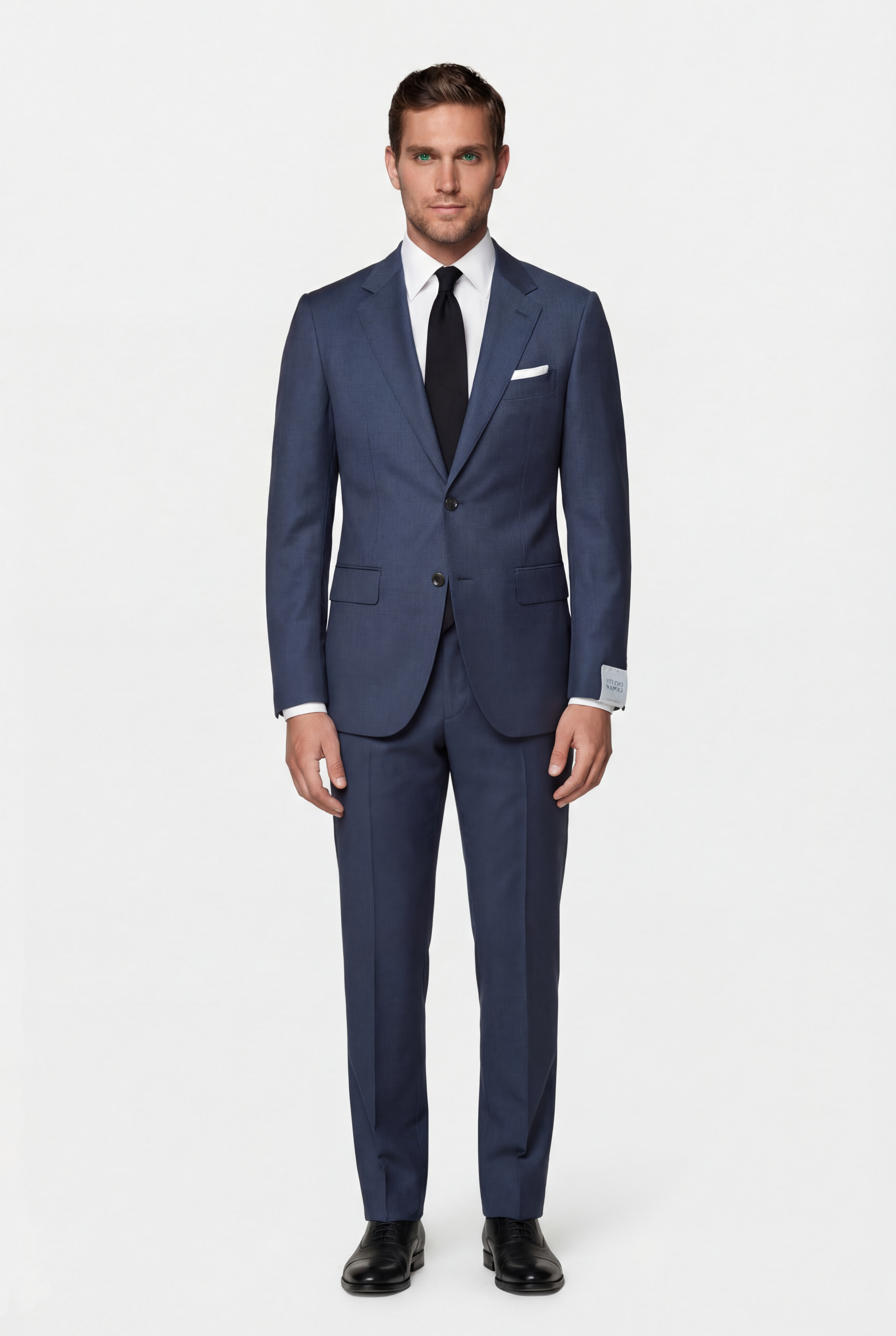 • Классический мужской костюм полуприлегающего силуэта из полушерстяной французской ткани с матовым эффектом. Пиджак однобортный, две шлицы. Застежка на две пуговицы. Воротник классический, отложной, на лацкане имеется фасонная петля. Край лацкана, воротник, клапаны карманов декорированы отделочной строчкой «вспушка» (имитация ручного стежка). Два боковых кармана с клапанами, нагрудный карман «листочка». Рукава со шлицами на 4 пуговицы пришитые внахлест. Четыре внутренних кармана, один застегивается на пуговицу. Брюки полуприлегающего силуэта с классической посадкой, два боковых кармана, два задних кармана с застежкой на пуговицу, на поясе предусмотрены шлевки для ремня. Подкладка: 100 % вискоза. Отличный вариант на каждый день.