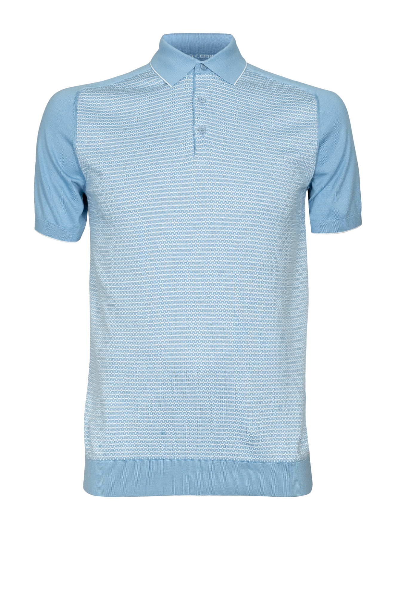 • Поло ENRICO CERINI полуприлегающего силуэта из высококачественной хлопковой пряжи «Emilcotoni»-это итальянская пряжа класса люкс, изделия из такой пряжи мягкие, устойчивы к пилингу и выцветанию, а так же мало подвержены усадке. Воротник отложной. Застежка на три пуговицы. Низ изделия и рукавов на резинке. Передняя часть поло с рисунком, спинка гладкая. Стильная и элегантная вещь отлично подойдет для повседневной носки.